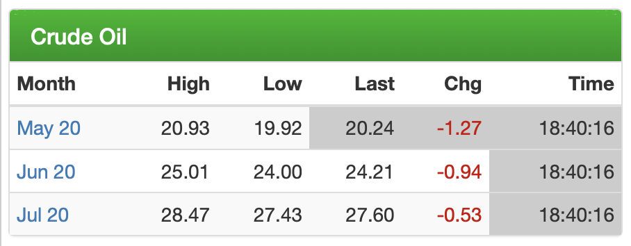 The price of crude oil has reached a new contract low below $20 a barrel.