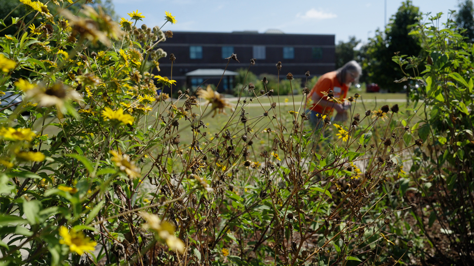 The group that maintains the grounds, led by Master Gardener & Naturalist Kristen Camp, emphasize the benefits of native plants for wildlife and low maintenance gardening at home. The garden is designed with different plant heights and species, and the team educates the public on native plant care and the importance of native trees and shrubs.