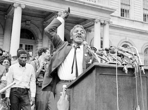 Bayard Rustin speaks in front of City Hall in New York on May 18, 1964, at a rally for school integration. (AP)