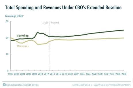 The 2013 Long-Term Budget Outlook finds that although in the short term the deficit is expected to decline, it will grow again — and, ultimately, in a big way.