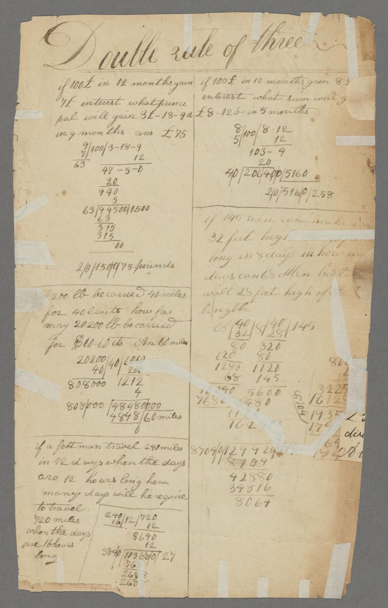 These photos provided by permission of the Houghton Library at Harvard University in Cambridge, Mass., show two pages from the library's archives that Illinois State University math professors Nerida Ellerton and Ken Clements on Friday, June 7, 2013 confirmed as two new pages to add to the math notebook believed to be the oldest surviving document written by Abraham Lincoln. The pages are from the 1820s. Lincoln's stepmother gave the notebook to Lincoln law partner William Herndon after the 16th president's death.