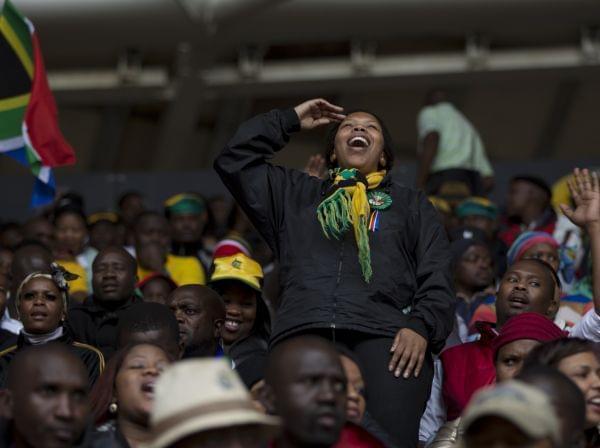 The service was held in front of a vociferous crowd in the FNB stadium in Johannesburg.