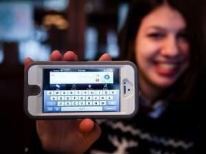 Today, fortunately, Samantha's voice takes up much less space. She types into a special program on an iPhone or iPad, and a synthesized voice in the program says the words aloud. The voice, one of several types on the market, is called "Heather." That's a nice enough name — easygoing and accessible — but Grimaldo doesn't like to use the voice if she can help it.