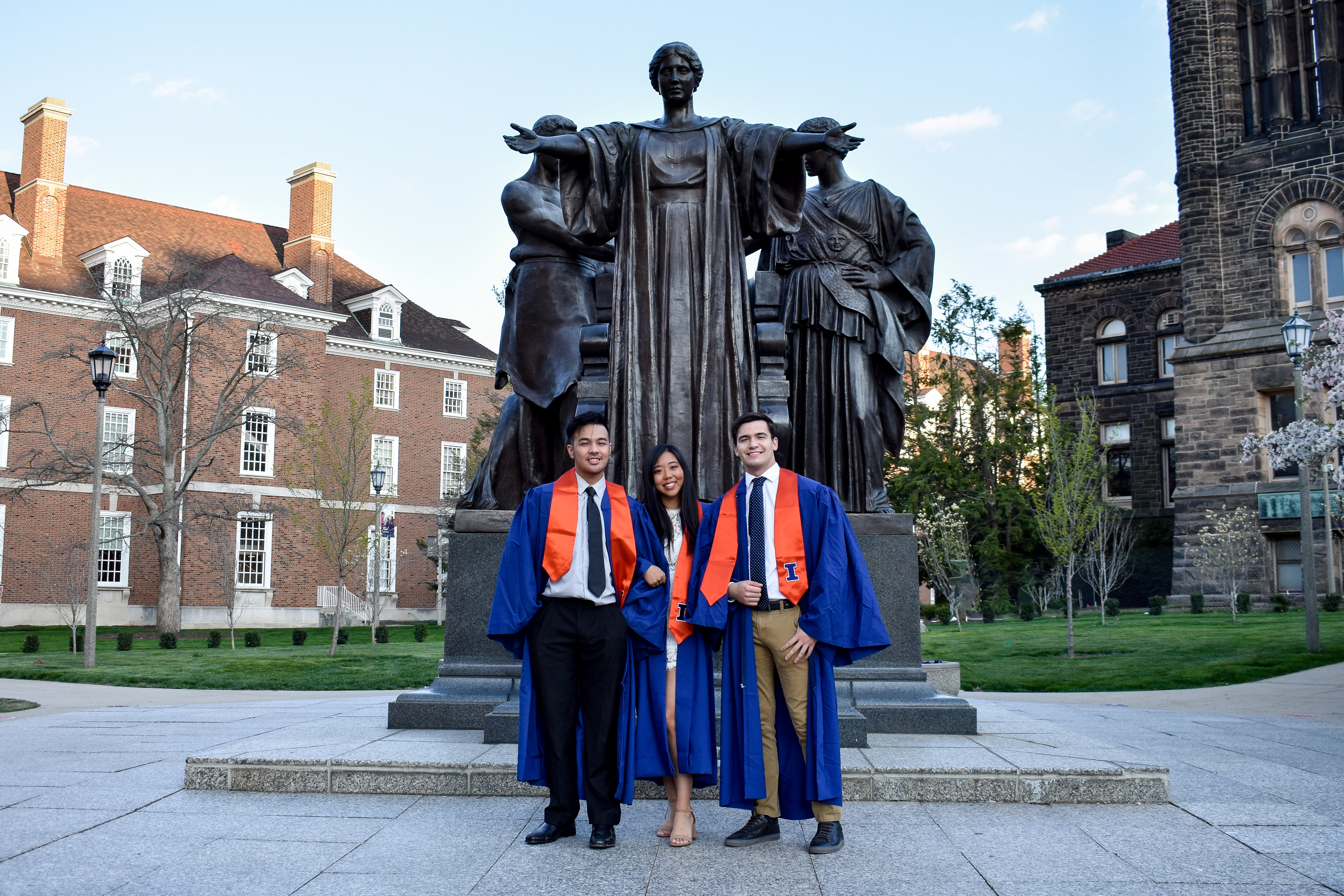 URBANA — Bells rang across the University of Illinois’s main quadrangle as seniors lined up at Alma Mater to take graduation pictures by Altgeld Tower.