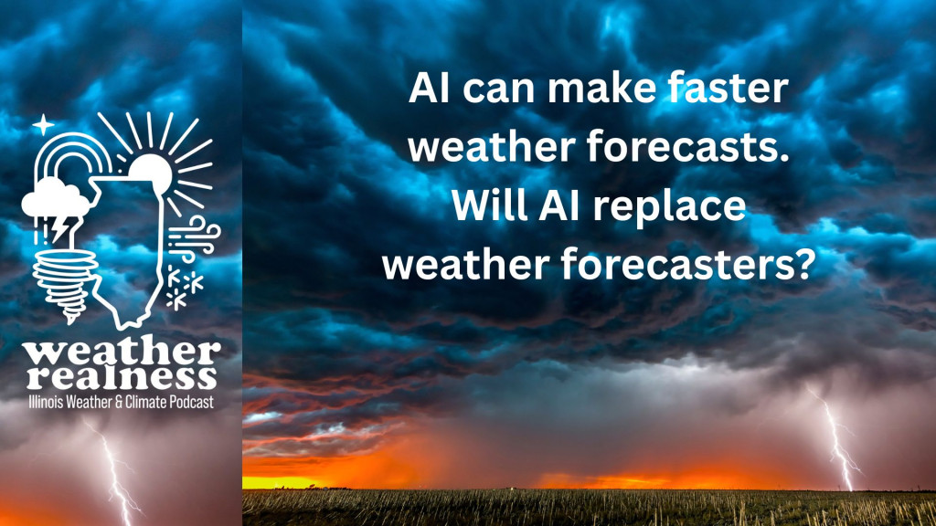 // This is a machine generated transcript. Please report any transcription errors to will-help@illinois.edu. [00:00:00] spk_0: The weather and climate often cause concern and curiosity, but understanding the facts behind the phenomena can be a challenge. We're here to help. From the University of Illinois, Urbana-Champaign and Illinois Public Media, welcome to Weather Realness, a weekly podcast about the skies above Illinois and the world. [00:00:30] Steve Nesbitt: I'm your host Steve Nesbitt, head of the Department of Climate, Meteorology and Atmospheric Science at the University of Illinois Urbana-Champaign. [00:00:37] Jeff Frame: and I'm Jeff Frame, also a professor in the Department of Climate, Meteorology and Atmospheric Sciences at the [U of I]. [00:00:44] Steve Nesbitt: AI now has a sizable presence in many areas of our lives from ChatGPT to huge data centers to phone calls and emails that just don't sound like a person. [00:00:53] Jeff Frame: However, meteorologists are using AI to improve weather forecasting. For [00:00:58] Speaker 3: decades, meteorologists relied on the European Centre for Medium-Range Weather Forecasts, using data from satellites, buoys, and weather stations. Last year, tech company Huawei Pangu boasted their AI weather model that could produce a weeklong forecast in 1.4 seconds, compared to the old physics-based model that could produce one forecast every six hours. [00:01:20] Steve Nesbitt: To learn more about how AI is used in weather prediction, we're joined by Dr. Randy Chase, atmospheric data scientist for Tomorrow.io, an AI weather forecast group and graduate of the Department of Climate, Meteorology and Atmospheric Sciences at the University of Illinois. Thank you for joining us, Randy. [00:01:37] Randy Chase: Thanks for having me. [00:01:39] Steve Nesbitt: So Randy, can you tell us a little bit about your work with Tomorrow.io? [00:01:42] Randy Chase: So Tomorrow.io is a startup weather company providing forecasts for the private industry, and we do that through three main pillars of weather forecasting. So the first part about that is we collect novel microwave sounder data. So this is satellite data that is being collected in the microwave spectrum that helps provide information on temperature and humidity. And we first started launching those in about 2024 and have since launched 11 total sounders. So this is our first part of the business and I'm involved with preparing that data and doing science with the microwave sounder data. Beyond that, the second part of the company is building more specialized forecasts for customer needs. So there are a lot of public weather forecasts out there such as the ones from NOAA that a lot of people use, and they're great for general use, but there's a lot of commercial need for better results for things like precipitation down with timing down to like 15 minutes or hitting a specific location, as well as things like when will my weather station or my factory observe freezing temperatures type of perspective and for how long. So, at Tomorrow.io we build custom forecasts to help narrow in those broad general forecasts from NOAA and help our customers reduce losses and create more optimal conditions for their businesses. And then the final part of our company is that we use a GUI or a front-end platform that allows for customers to choose their own thresholds and build their own alerting system. So essentially they can have automated alerts that go across their entire company. [00:03:18] Steve Nesbitt: Randy, let's talk a little bit broader about AI because it's basically infiltrated almost every part of our life and you can't talk to anybody anymore without talking about AI. But of course there's AI like ChatGPT, there's AI that we see on social media that everybody laughs at. But can you talk a little bit about, you know, broader about AI and then later on we'll talk about how it affects weather forecasting. [00:03:45] Randy Chase: Yeah, so artificial intelligence or AI is basically a computing system that does tasks that would normally require a human, and maybe that definition needs to change as we become more and more incorporated with artificial intelligence in our everyday life. So that's kind of the broad set of artificial intelligence and something that we use more regularly in atmospheric sciences and weather prediction is more called machine learning. And this is an algorithm that learns from past data and does automated decisions based on that learning from past data. [00:04:19] Steve Nesbitt: So Jeff, you've been doing weather forecasting for a long time. What is the experience of and the procedure for doing weather forecasts without AI? [00:04:28] Jeff Frame: Yeah, so very short term forecasts. We can look at observations, for example, look at radar to issue a tornado warning, something like that. But if we're going out, you know, several hours or certainly beyond a couple of days, those forecasts are almost entirely based on computer forecast models. The first one of these was developed all the way back in the 1950s and then they've been refined since over the decades. But basically the way these models work is imagine a sheet of graph paper stretched around the world and everywhere the grid lines on the graph paper intersect, these computer models solve a very complicated set of atmospheric equations, and these equations are so complex that you know even Isaac Newton or Albert Einstein can't pick up a pen and write down, oh, X equals this and solve the equation. But of course the atmosphere is three dimensional. So we have not only one sheet of graph paper but maybe 50 or 60 sheets of graph paper stacked up stretched around the world, and it takes a lot of computing power to run these traditional, we call them numerical weather prediction models or NWP for short, such that these models take anywhere from a couple to several hours to run to produce like a two week forecast on a supercomputer. so if 